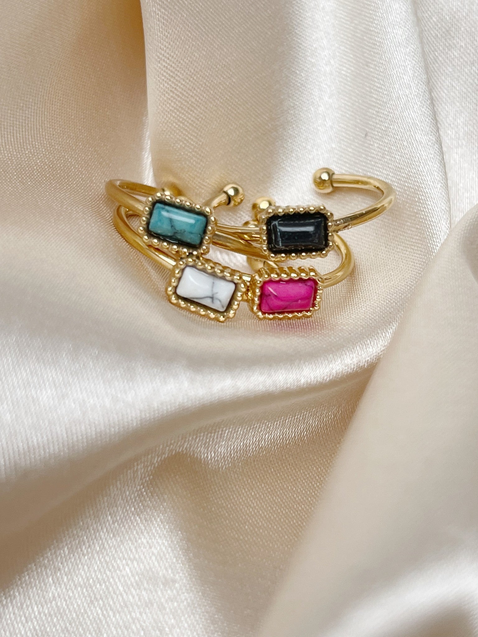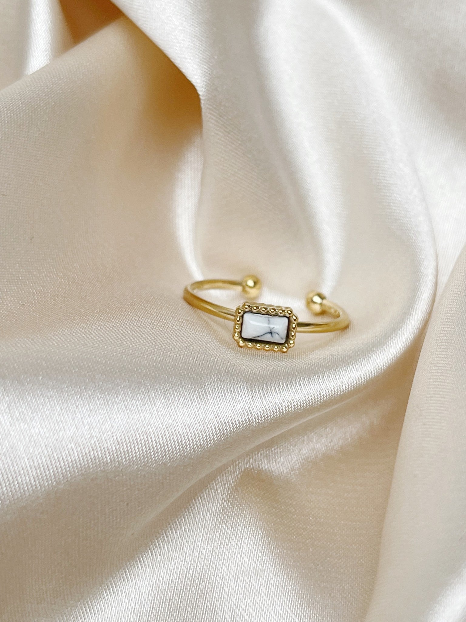 Our beautiful 'KARMA' ring is adjustable, so it actually fits anytime. The ring is made of natural stone combined with premium stainless steel. Combine the ring with our other rings and make it a party on your hands!