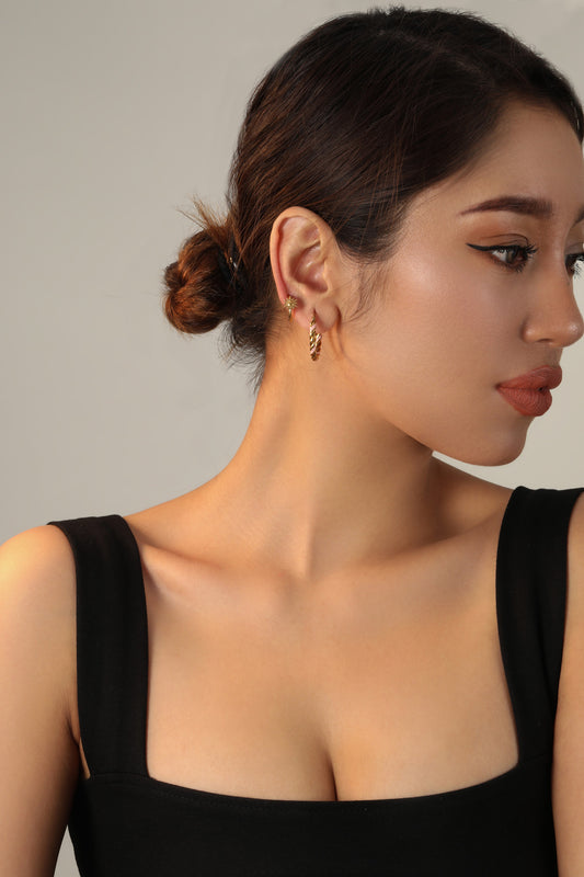 Earrings measuring approximately 1.2 centimeters with small suns. The earrings are made of stainless steel. Sold as a set of two.