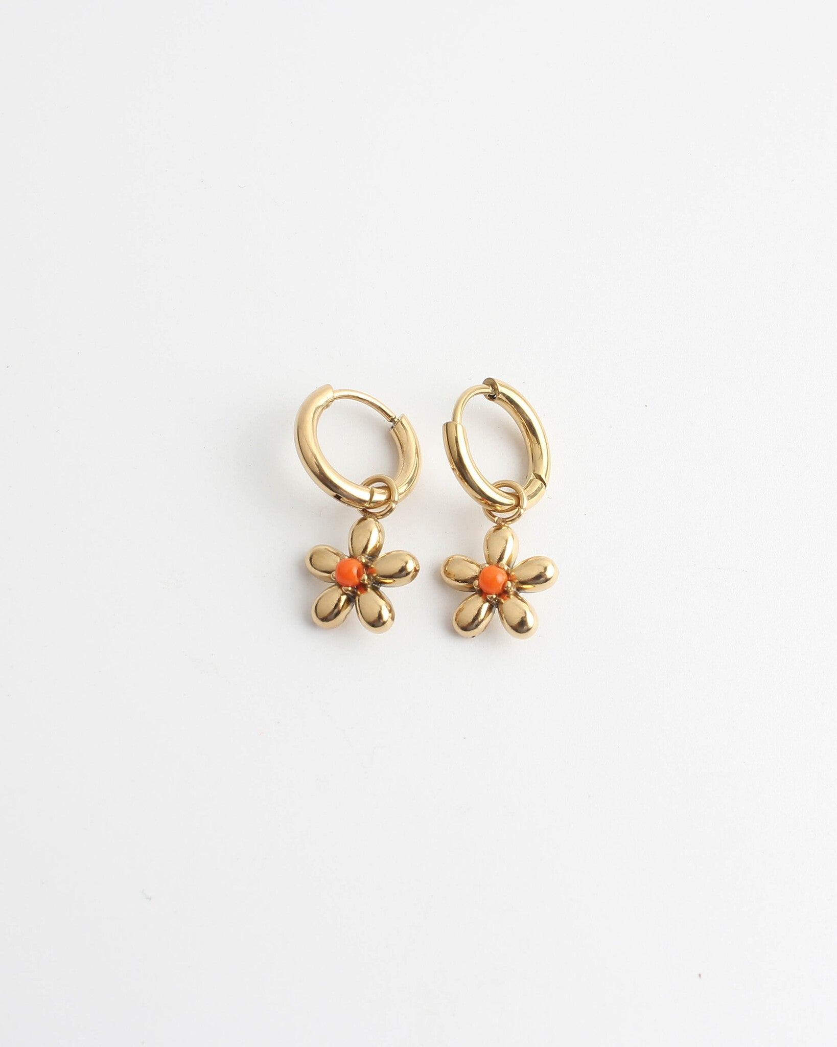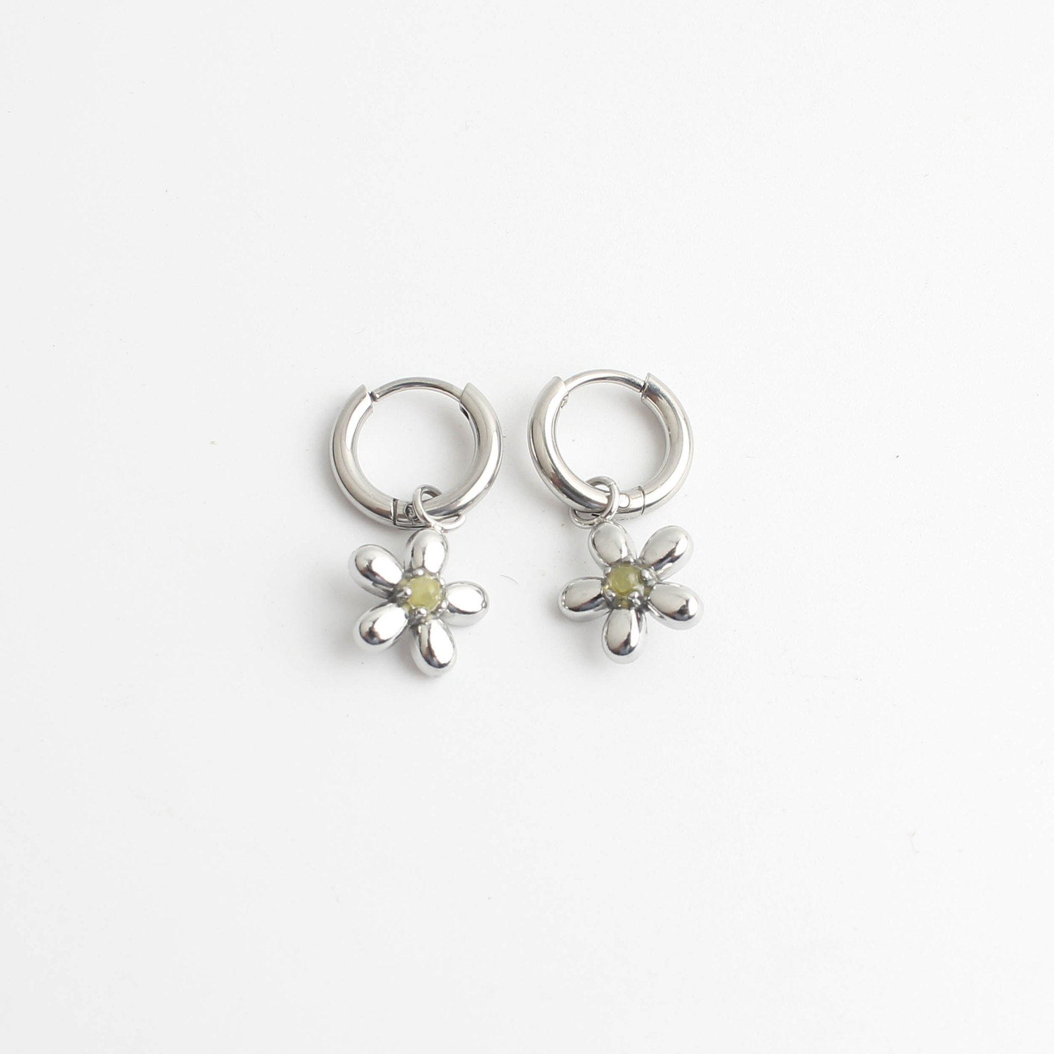 Cute floral earrings with colored stone. Sold as a set of two.